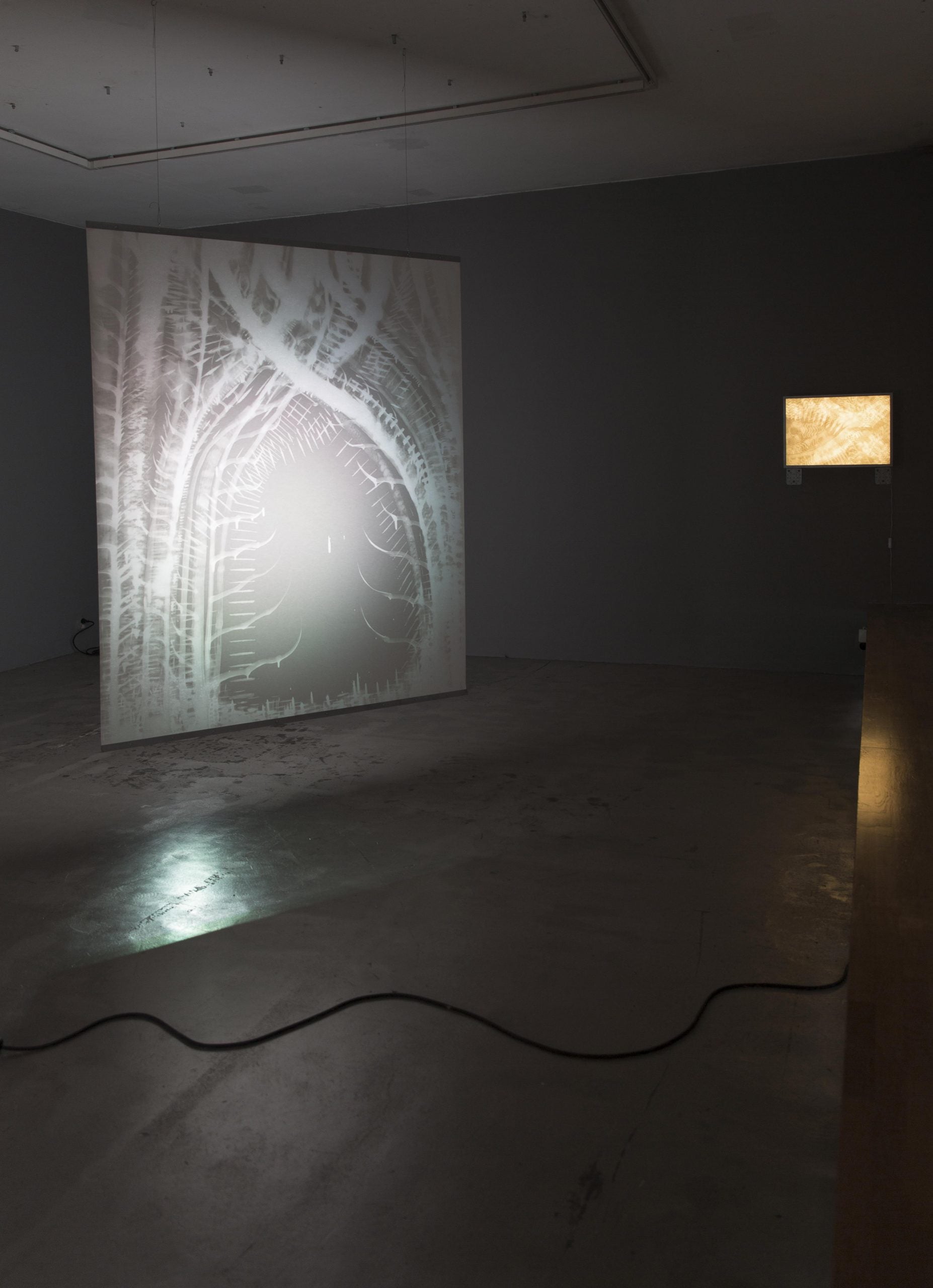 This piece is a little sister to a light painting from 2019, shown in the last photo, installed at the former MUU Gallery on Lönnrotinkatu. The colorwork is very delicate in this one, quite hard to capture in a photo.
