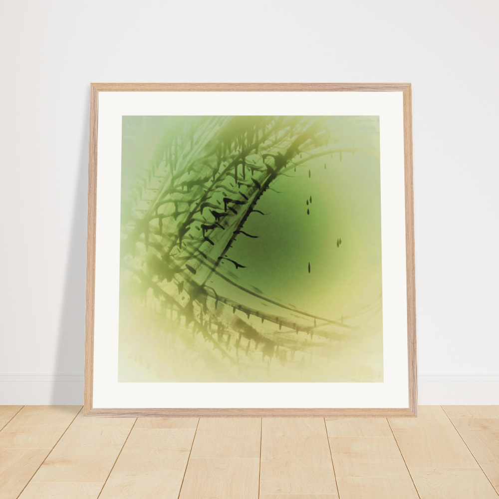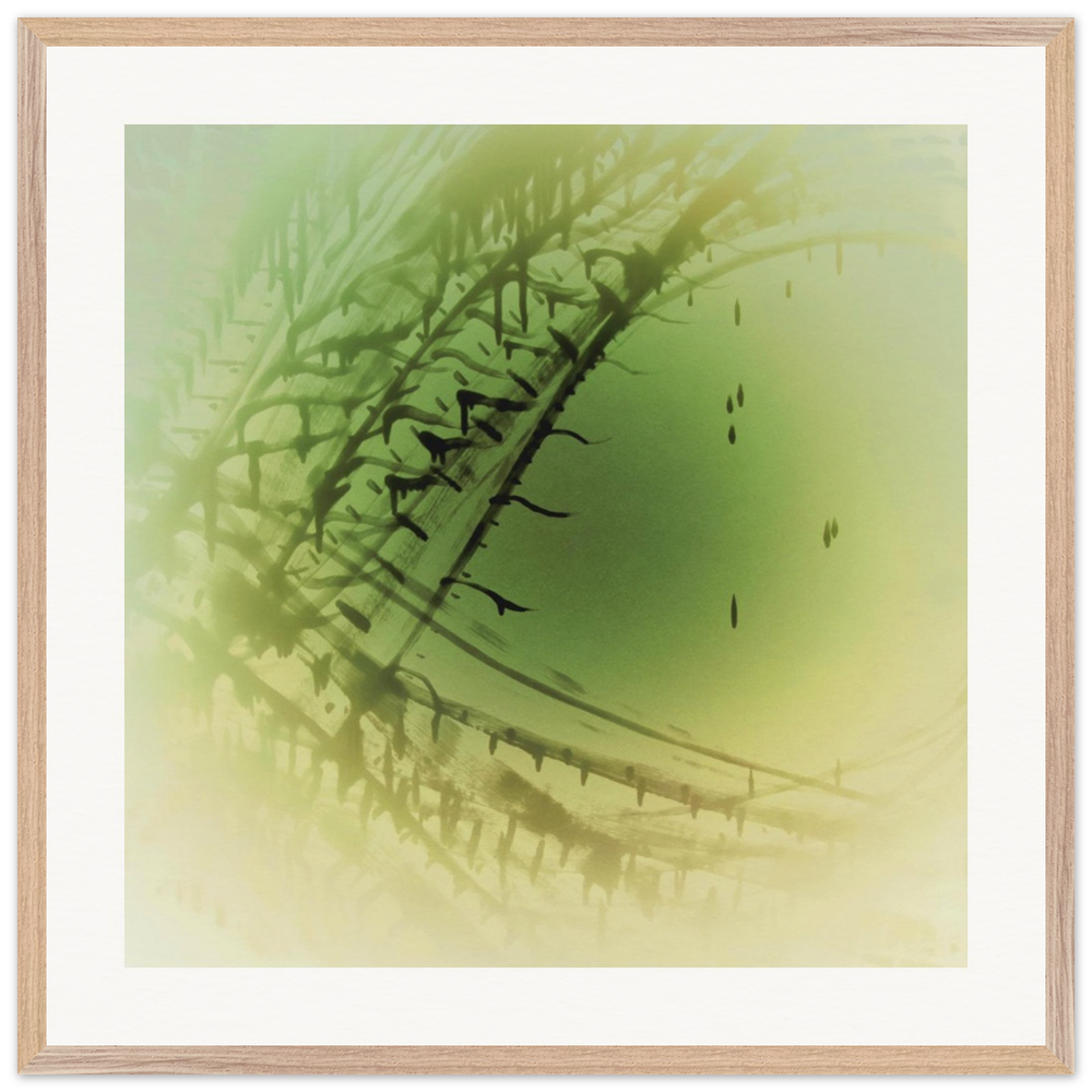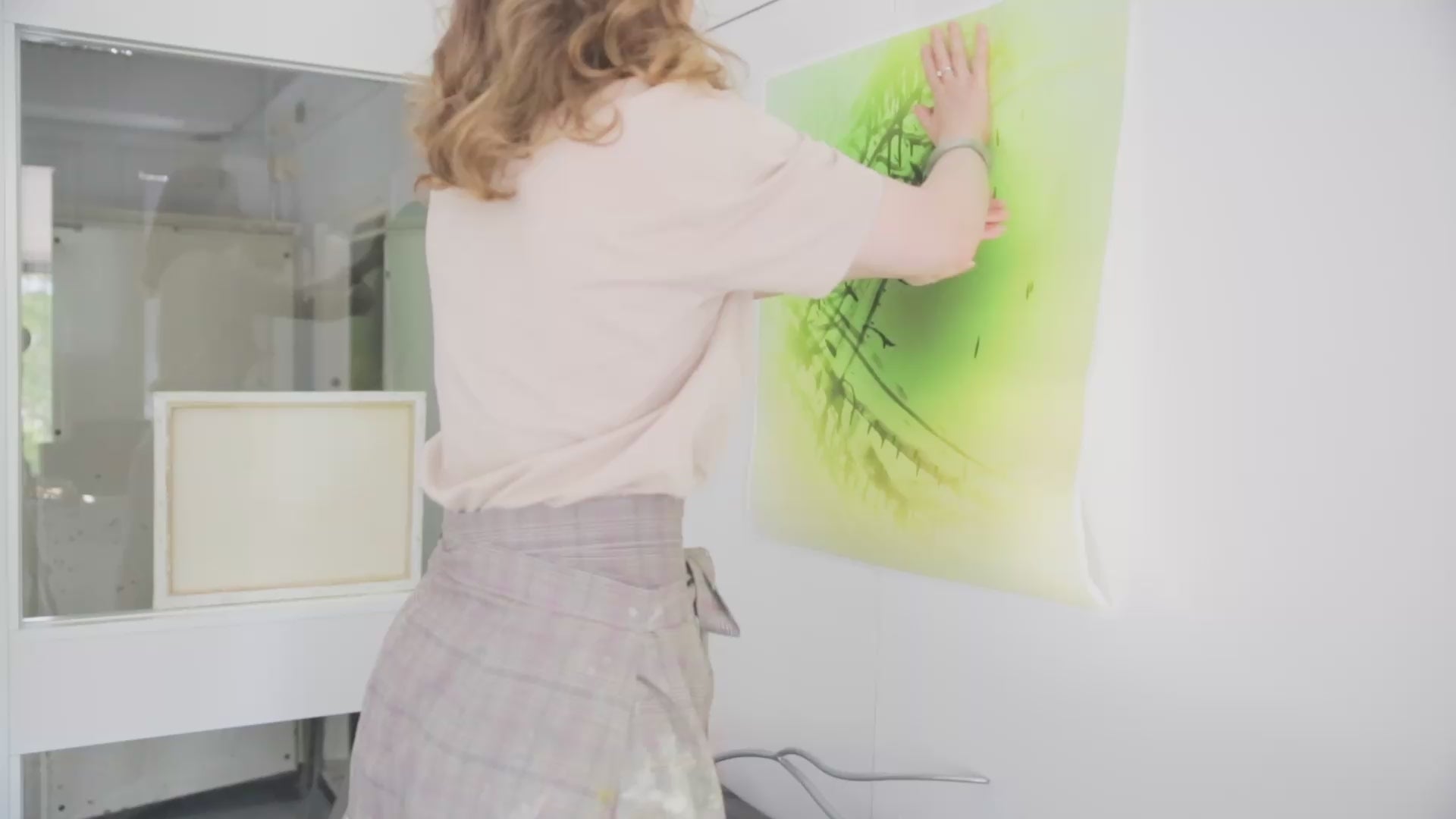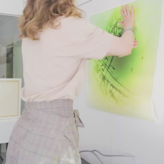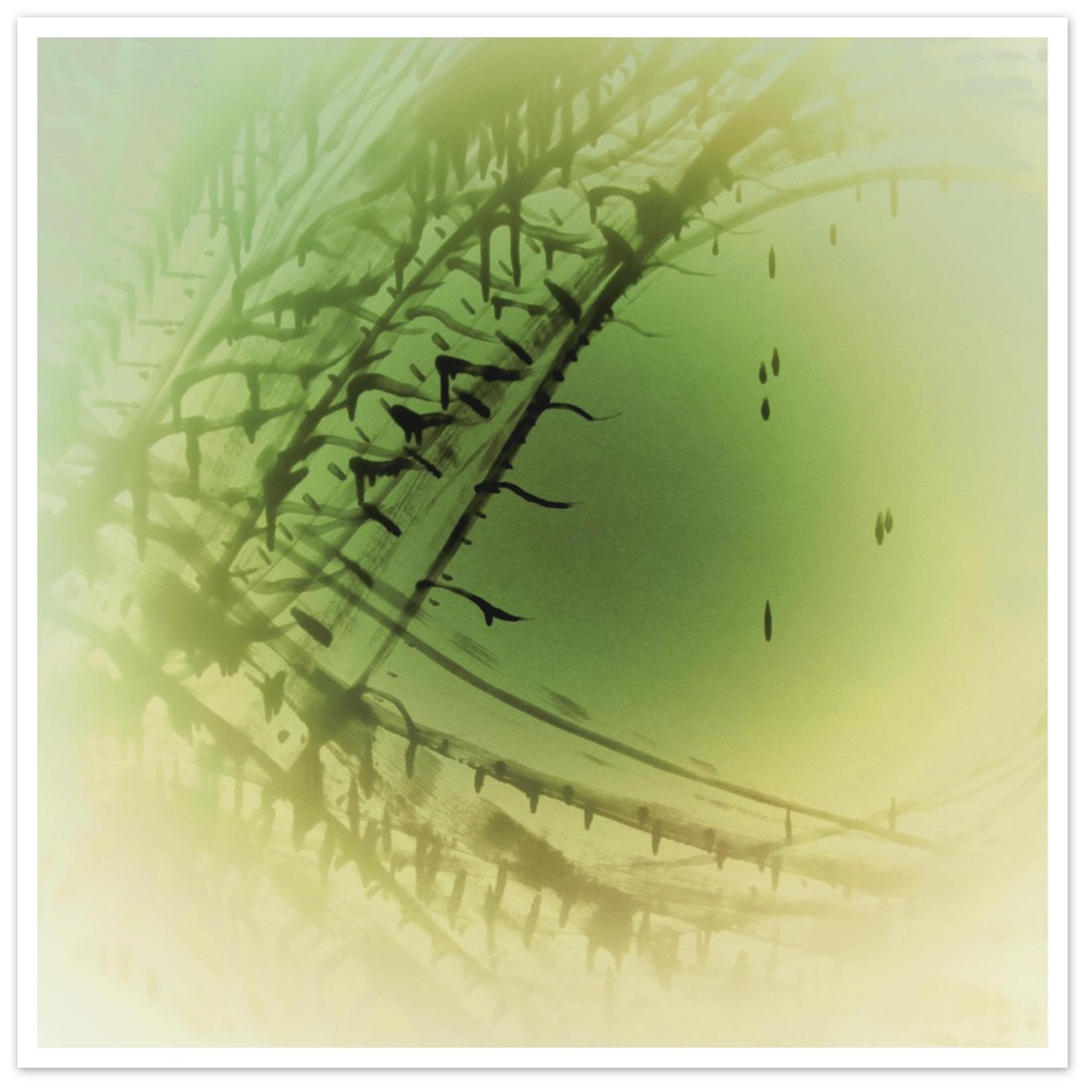 This work is a negative of the original painting made as a performance in 2023 on backlit paper. I like the green misty gradient of the work, which supports the brushstrokes reminiscent of some vegetation or writing. Citrinitas refers to the intermediatory stage of the alchemical transformation process, where a yellowish tone begins to form in the material worked into white in the previous stage. Citrinitas is a moment in the process when something new begins to emerge. That´s what spring represents.